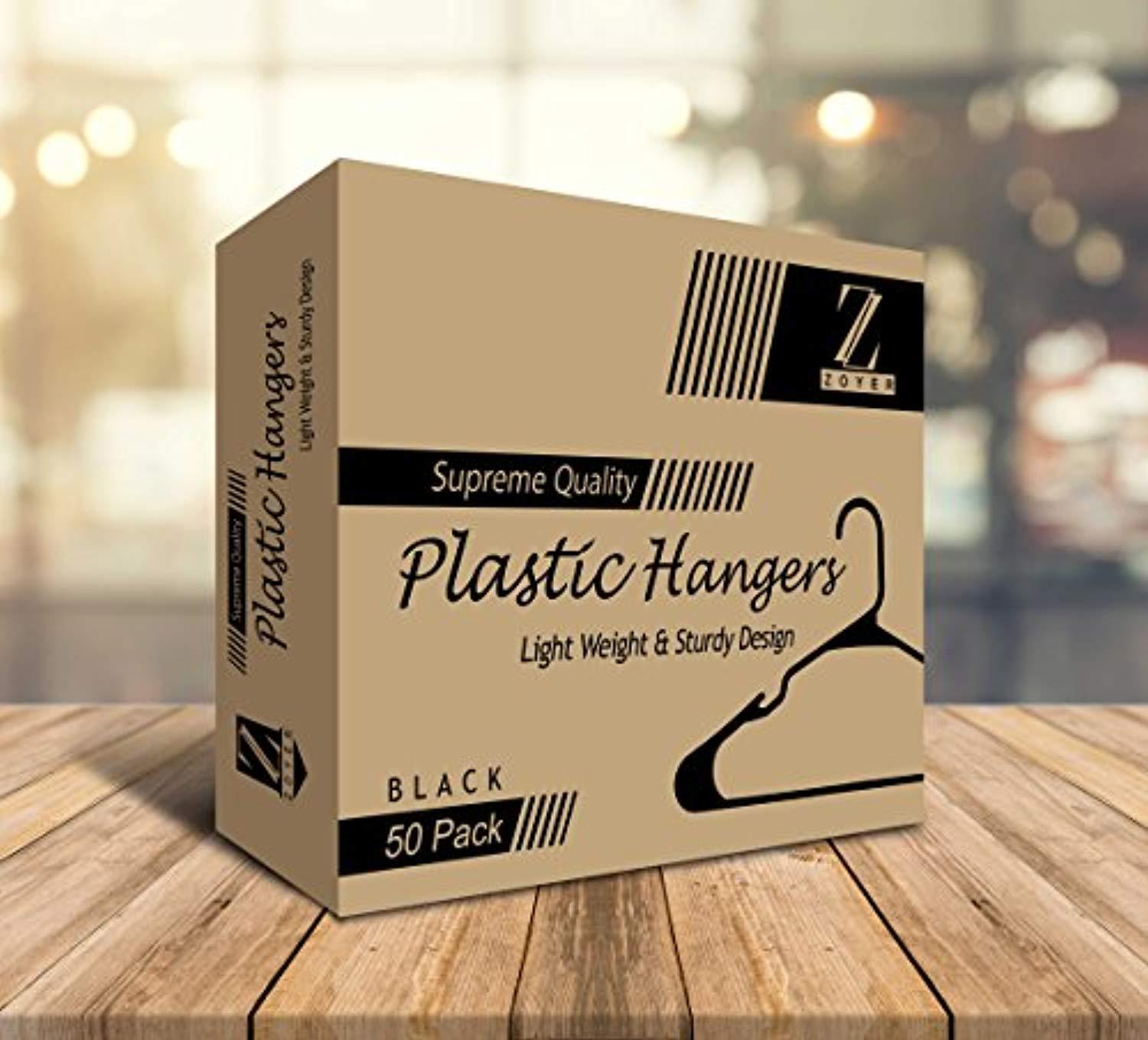 Zoyer Standard Plastic Hangers - Durable and Strong - Black (50)